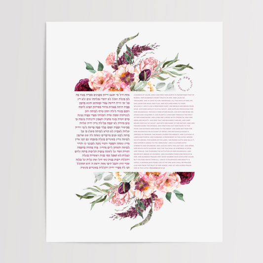Eshet Chayil (אֵשֶׁת חַיִל) – Deep Floral Art Print
