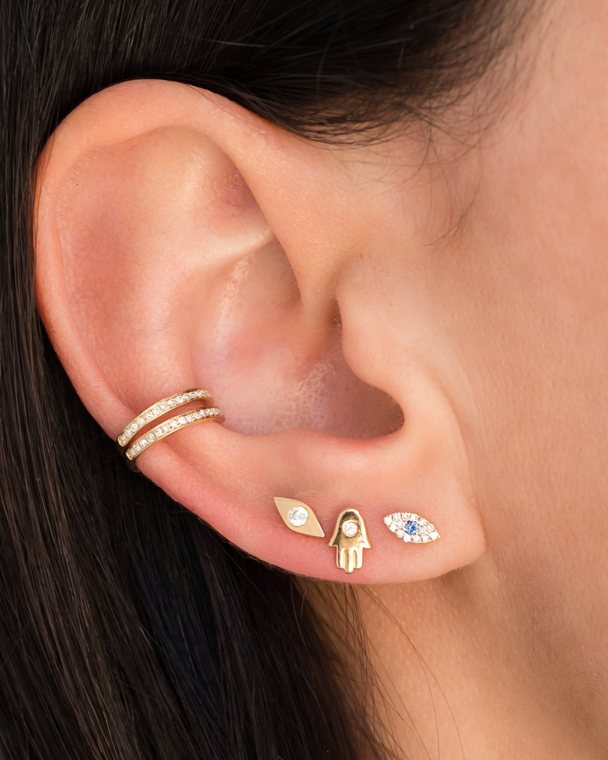 Beautiful hamsa earrings with centered small diamond stones set in 14k solid gold color of your choice. Uber chic and timeless, available in yellow, white, and rose gold.