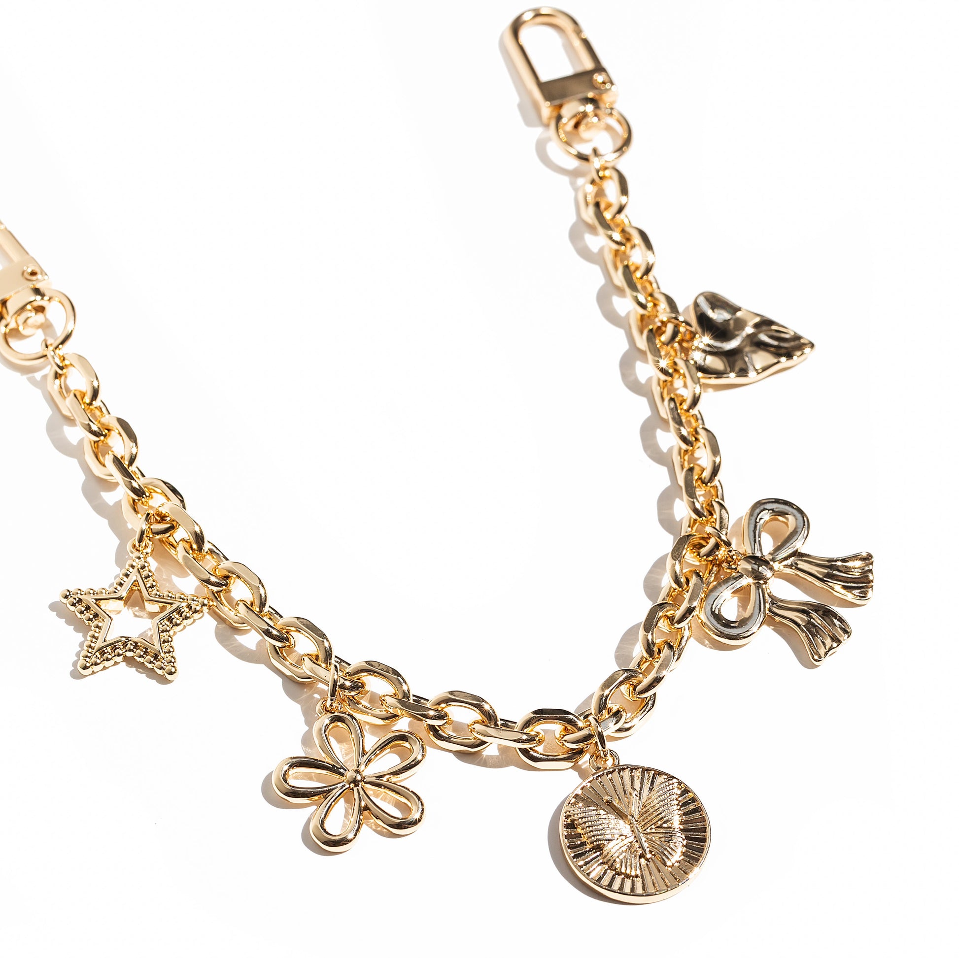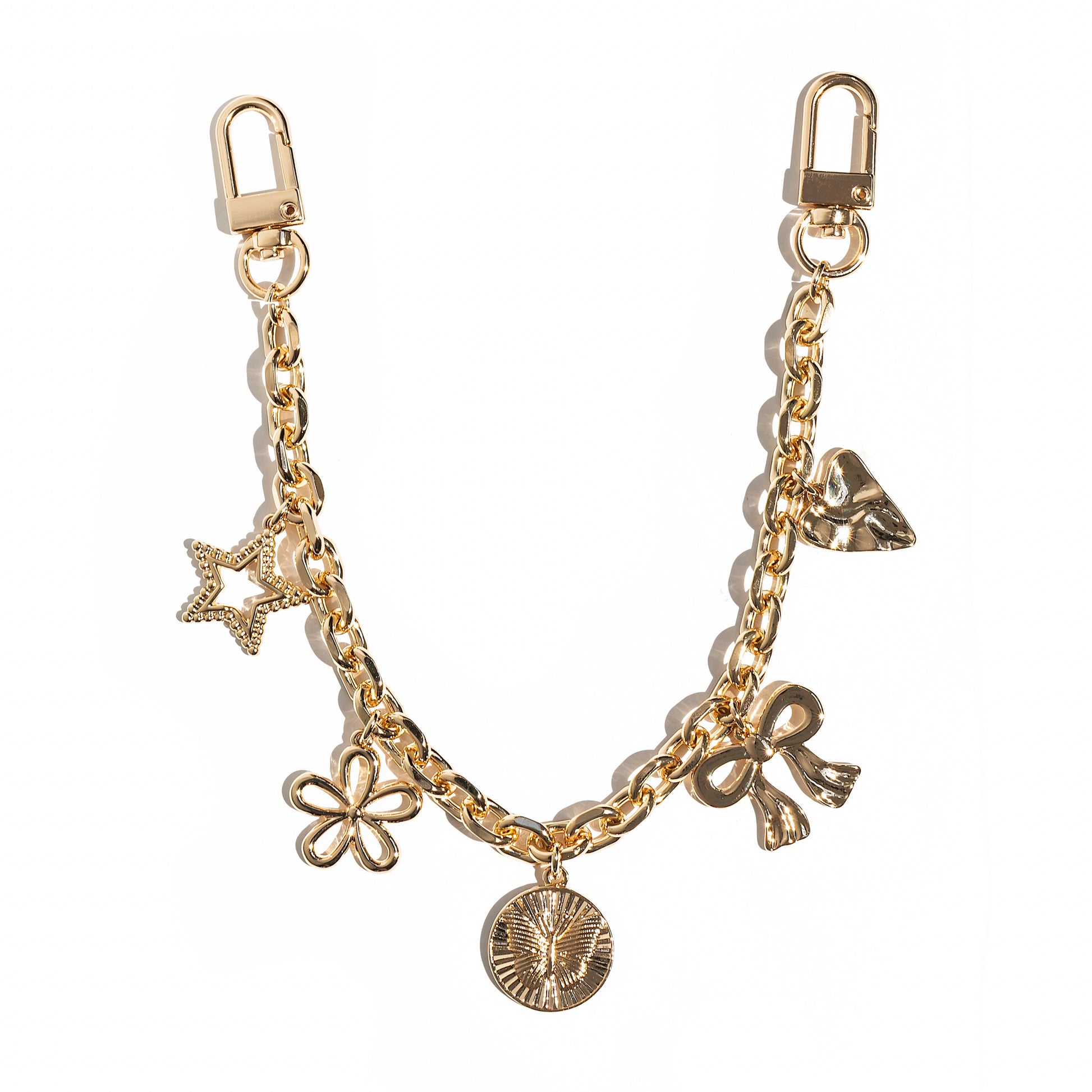 Make an entrance with the Charm Storm Bag Charm by Leo & Luca. This bold accessory clips to both bag handles for maximum impact, featuring a mix of iconic charms that bring edge, personality, and polish to any look.