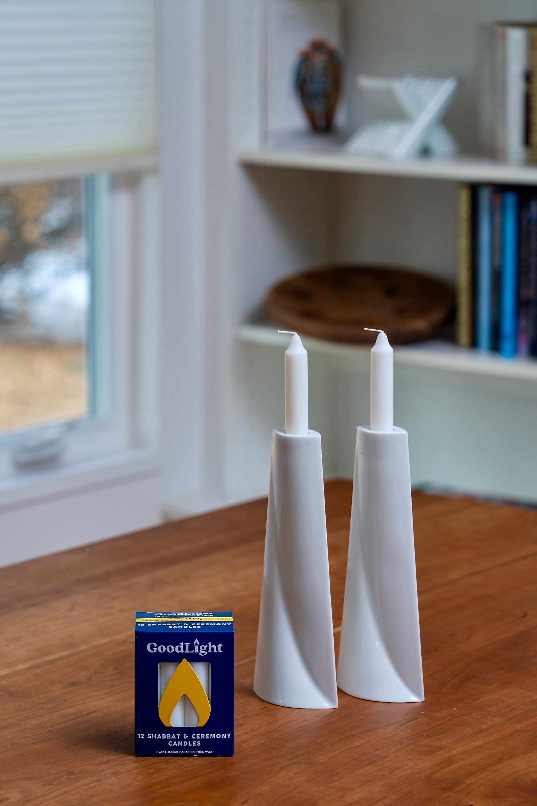 Bring a warm, steady glow to your Shabbat with these premium candles from Green Judaica. Made from 100% palm wax with a filament-free cotton wick, these unscented 4” taper candles burn cleanly for up to 3 hours. Designed to fit perfectly in our Green Judaica candlesticks, they’re dripless under ideal conditions (keep free from drafts and positioned upright).